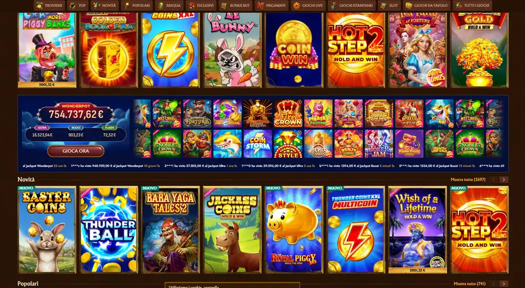Evolution Gaming supplies live blackjack, roulette, baccarat, poker, and game shows including Crazy Time, Monopoly Live, and Mega Ball. Dedicated Italian-language tables operate during peak hours (18:00-02:00 CET) with native speakers managing side bets, insurance, and dragon bonuses. Minimum stakes range €0.10 (roulette) to €5 (VIP blackjack), with maximum exposure reaching €5,000 per hand on premium tables.